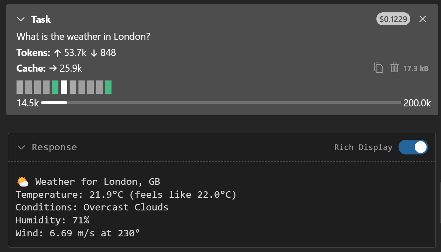 You’ve created a weather alert MCP server and deployed it on a virtual machine using Clouddley, connecting real-time weather data with AI assistance. Your server demonstrates how to integrate external APIs with the Model Context Protocol, giving Cline access to current weather conditions and enabling users to ask detailed questions about forecasts. This approach works beyond weather data. Apply the same pattern to build MCP servers for any external data source your applications need. Continue developing MCP servers that connect AI with real-world data to solve practical problems.Getting started with Clouddley?